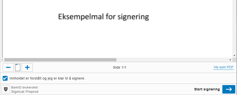 Mottaker huker av for at de er klare til å signere, og trykker Start signering
